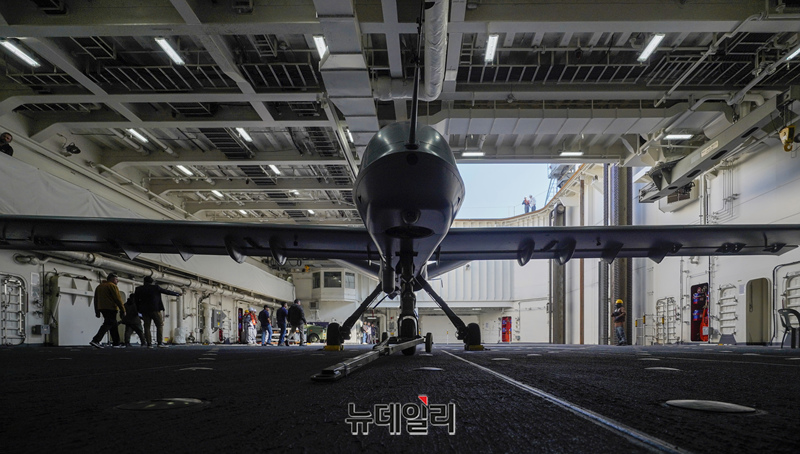 [포토] 독도함서 이륙 준비하는 고정익 무인기 모하비