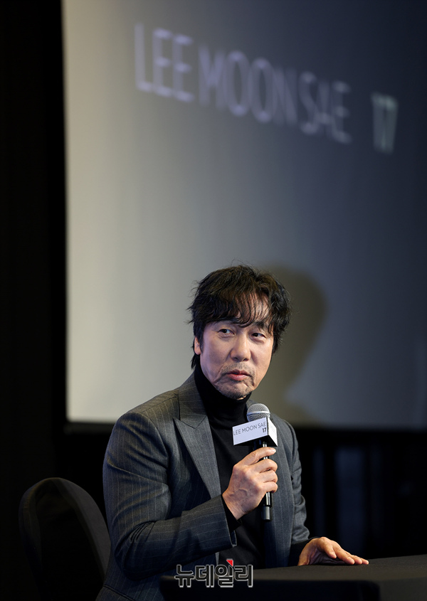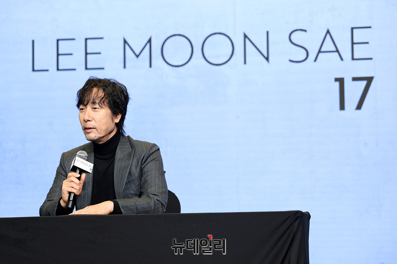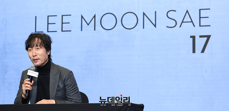 가수 이문세가 13일 오후 서울 마포구 상암스텐포드호텔에서 열린 정규 17집 선공개 기자간담회에서 곡 소개를 하고 있다. 이문세는 이날 수록곡 '이별에도 사랑이' '마이 블루스' 두 곡을 선공개 했다.