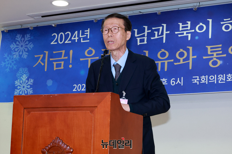 김태훈 (사)북한인권 이사장이 14일 오후 국회 의원회관에서 열린 '지금, 우리! 남과 북이 하나 되는 자유와 통일 콘서트'에 참석해 격려사를 하고 있다.이날 행사는 탈북민 출신으로 국회에 입성한 국민의힘 박충권 의원과 사단법인 물망초, 사단법인 북한인권, 자유북한방송, 탈북민인권단체총연합, 전국탈북단체대표자협의회, 전국탈북민연합, 자유통일문화원이 공동으로 주최했다.행사 주관은 '북한 인권 개선과 자유 통일을 위한 모임'(NANK)과 한반도청년미래포럼이 맡았다.1부에는 '한반도 통일을 위해 이루어야 할 급선무 및 통일 시 사회통합 문제'를 주제로, 박선영 물망초 이사장이 좌장을 맡아 김석우 북한인권시민연합 이사장, 김성민 자유북한방송 대표 등이 토론을 진행했다.이어진 2부에는 '우리가 진정으로 꿈꾸는 한반도 통일은 이것!'이라는 주제로, 탈북민 출신 변호사인 이영현 변호사(법무법인 이래)가 좌장을 맡아 박충권 의원, 인지연 NANK 대표, 최명섭 변호사, 박준규 한반도청년미래포럼 대표, 엔지 와닛 한반도청년미래포럼 국장이 토론을 이어갔다.