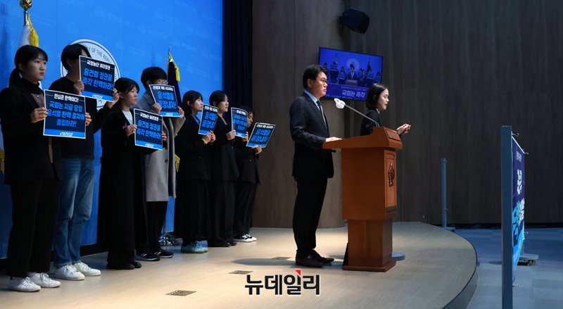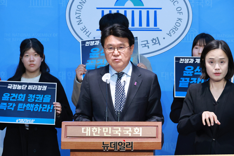 [포토] 尹 대통령 탄핵 촉구 기자회견서 발언하는 황운하 원내대표