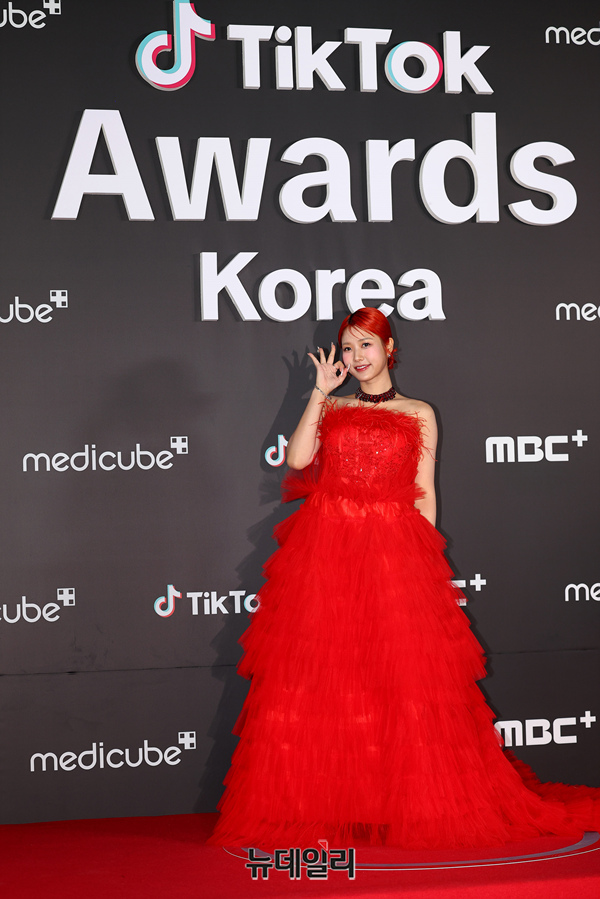 케지민이 15일 오후 서울 동대문구 경희대학교 평화의 전당에서 열린 '틱톡 어워즈 코리아' 레드카펫행사에 참석해 포즈를 취하고 있다.