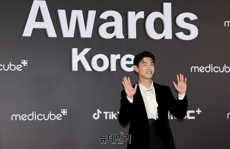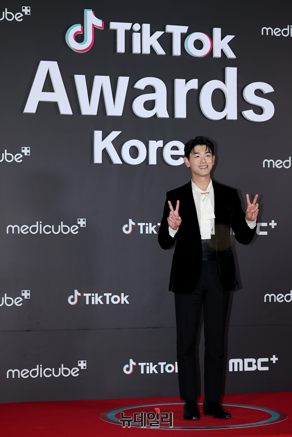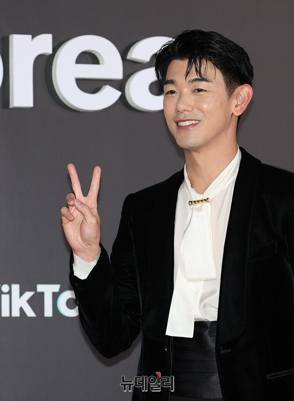 가수 에릭남이 15일 오후 서울 동대문구 경희대학교 평화의 전당에서 열린 '틱톡 어워즈 코리아' 레드카펫행사에 참석해 포즈를 취하고 있다. 에릭남은 본 행사 진행을 맡았다.