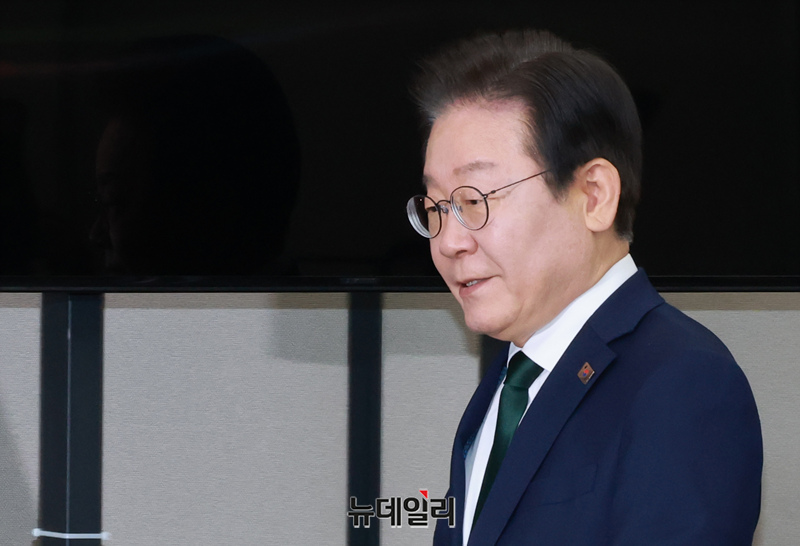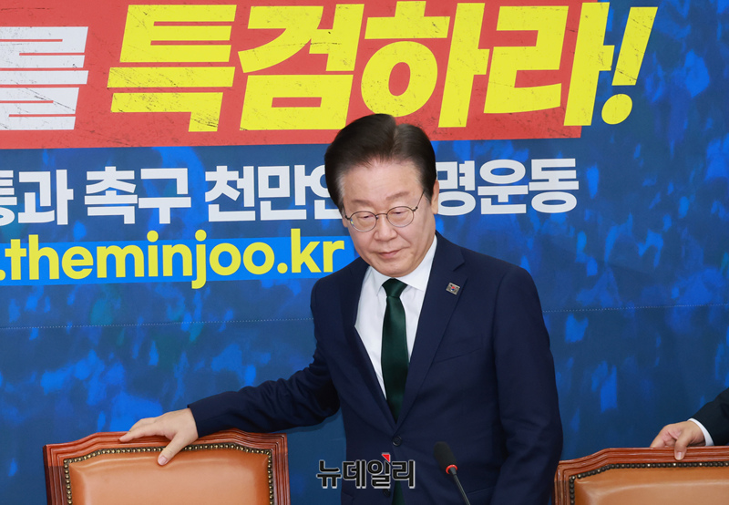 이재명 더불어민주당 대표가 18일 오전 국회 당대표실에서 열린 최고위원회의에 참석하기 위해 입장하고 있다.