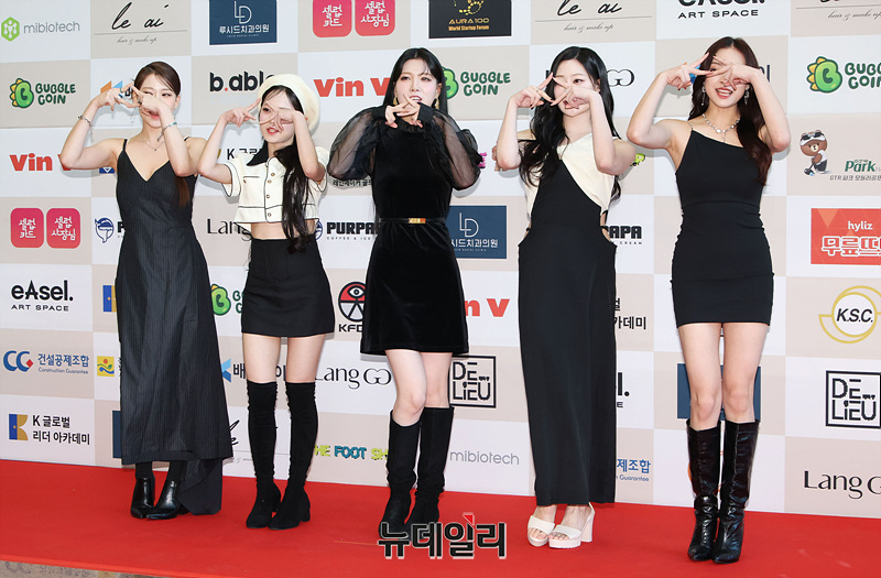 걸그룹 위치스가 18일 오후 서울 강남구 건설회관에서 열린 '제44회 황금 촬영상 시상식' 레드카펫에서 포즈를 취하고 있다.
