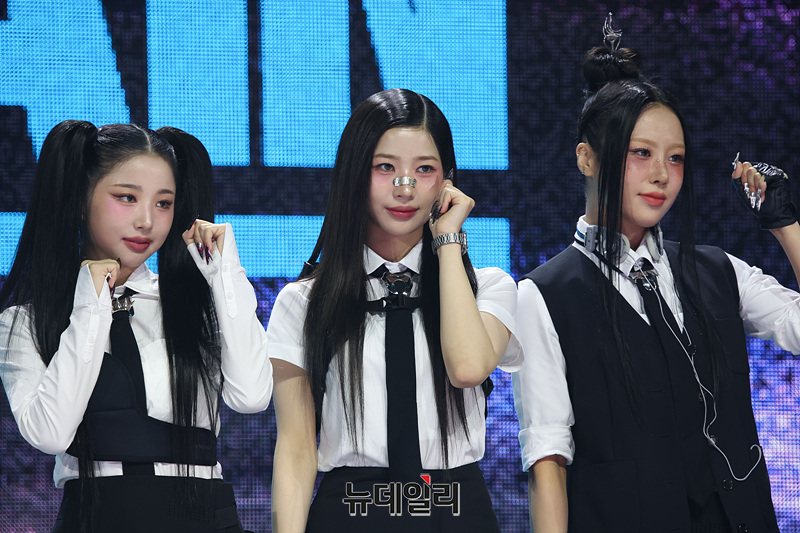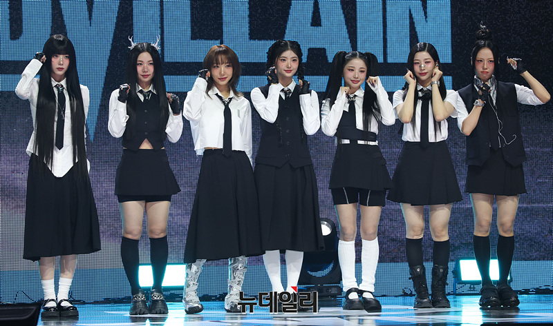 걸그룹 배드빌런(BADVILLAIN) 클로이 영, 켈리, 엠마, 빈, 윤서, 이나, 휴이가 19일 오후 서울 광진구 예스24 라이브홀에서 열린 싱글 1집 '숨(ZOOM)' 발매 기념 미디어 쇼케이스에서 포즈를 취하고 있다.