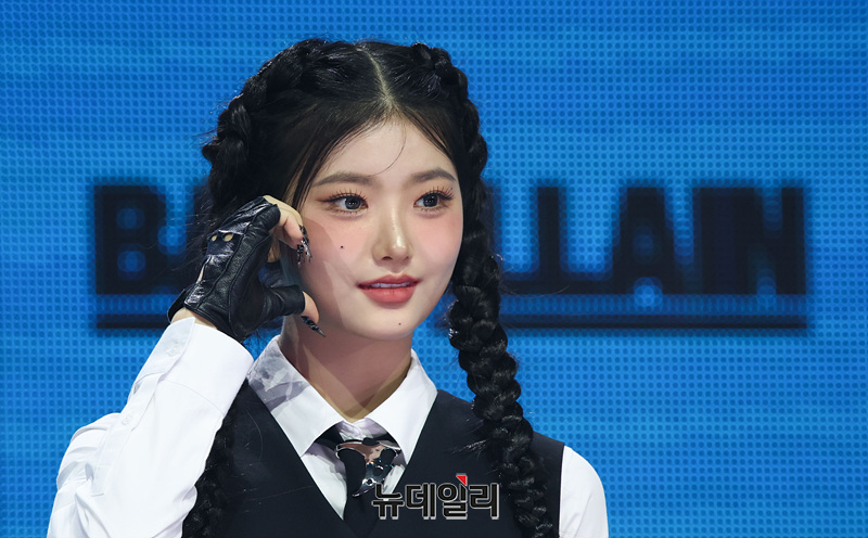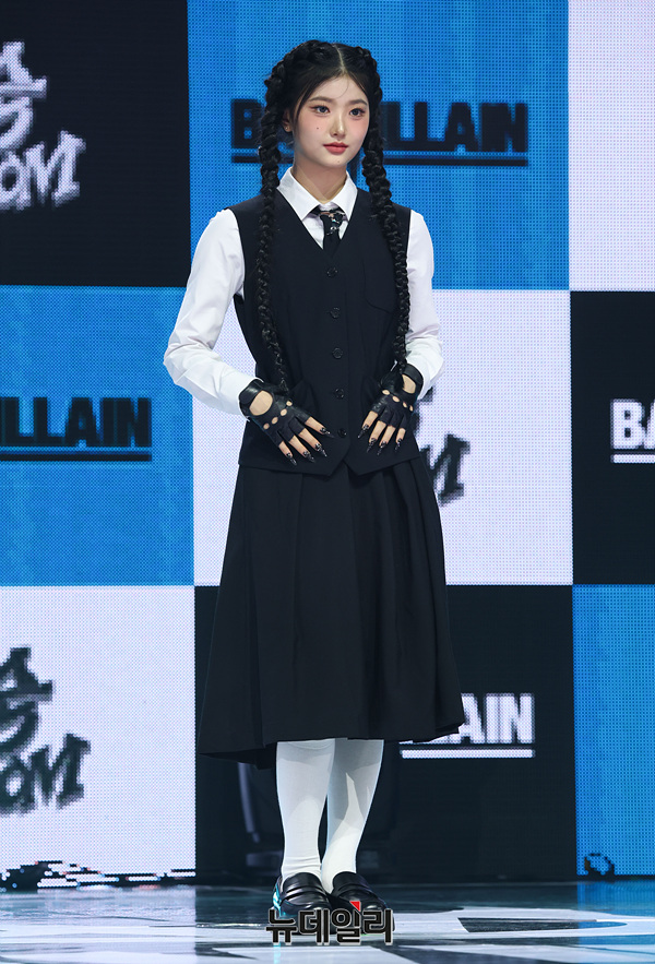 걸그룹 배드빌런(BADVILLAIN) 켈리가 19일 오후 서울 광진구 예스24 라이브홀에서 열린 싱글 1집 '숨(ZOOM)' 발매 기념 미디어 쇼케이스에서 포즈를 취하고 있다.