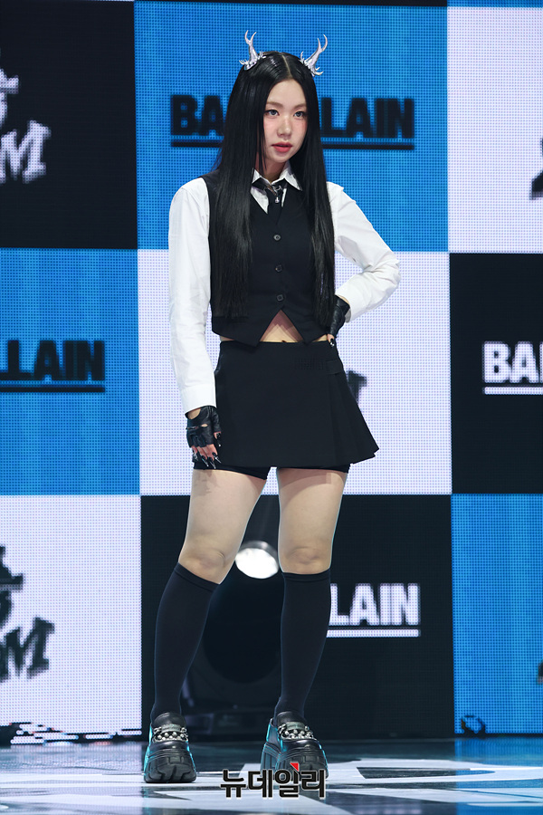 걸그룹 배드빌런(BADVILLAIN) 휴이가 19일 오후 서울 광진구 예스24 라이브홀에서 열린 싱글 1집 '숨(ZOOM)' 발매 기념 미디어 쇼케이스에서 포즈를 취하고 있다.