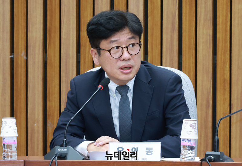 유의동 여의도연구원장이 19일 오후 국회에서 여의도연구원 주최로 열린 트럼프 2기 행정부 출범과 한미동맹 및 통상외교 강화 방안 긴급 정책토론회에서 개회사를 하고 있다.
