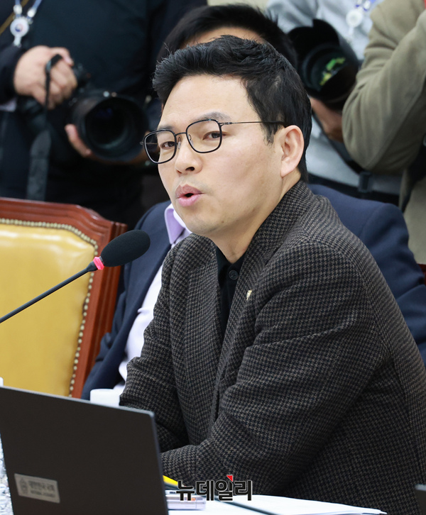 박정훈 국민의힘 의원이 20일 국회 과학기술정보방송통신위원회에서 열린 박장범 KBS 사장 후보자의 인사청문회에서 질의를 하고 있다.