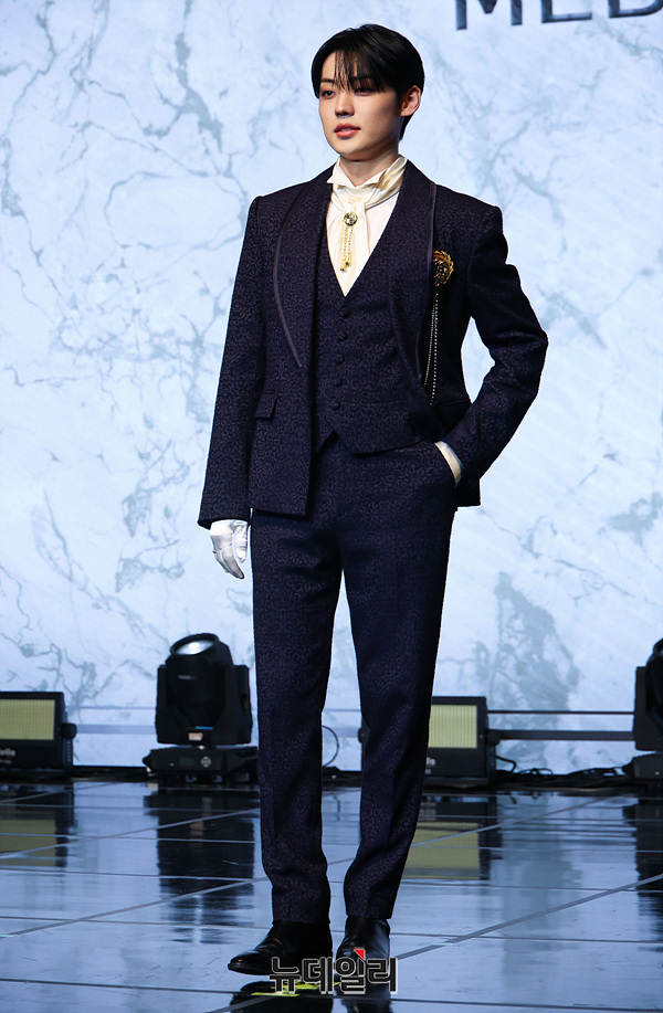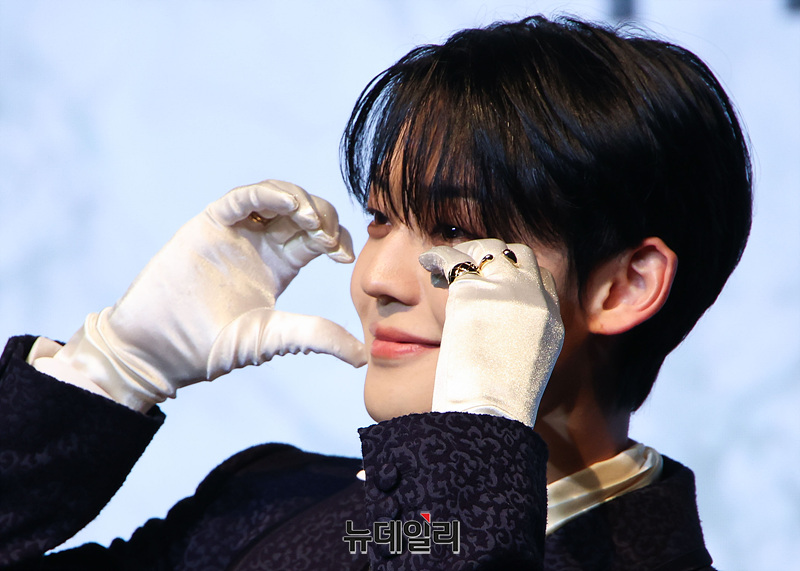 그룹 에이스(A.C.E) 강유찬이 20일 오후 서울 강남구 일지아트홀에서 열린 싱글3집 '피냐타(PINATA)' 발매 기념 쇼케이스에서 포즈를 취하고 있다.