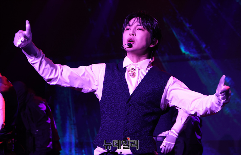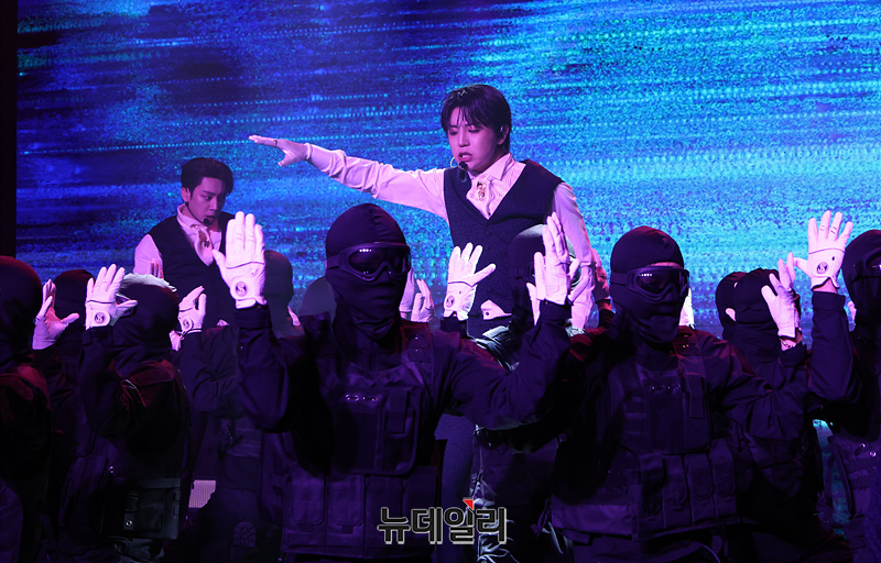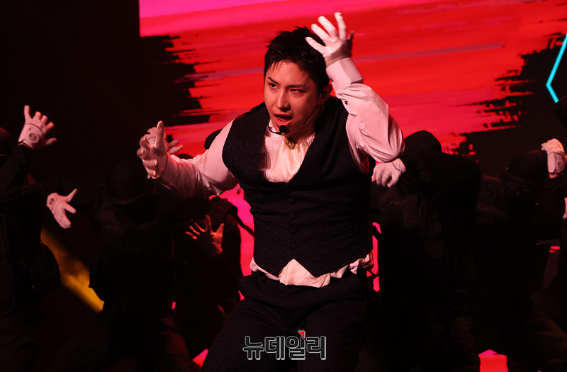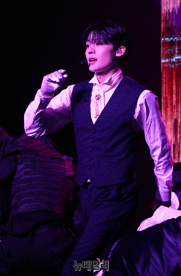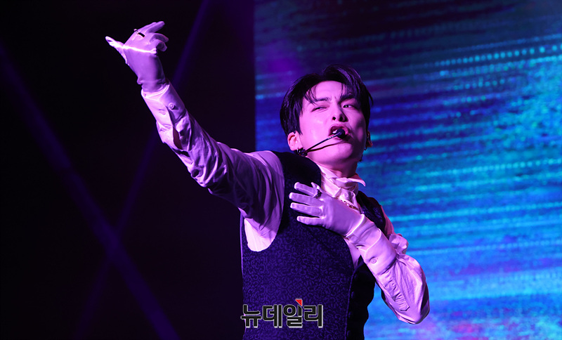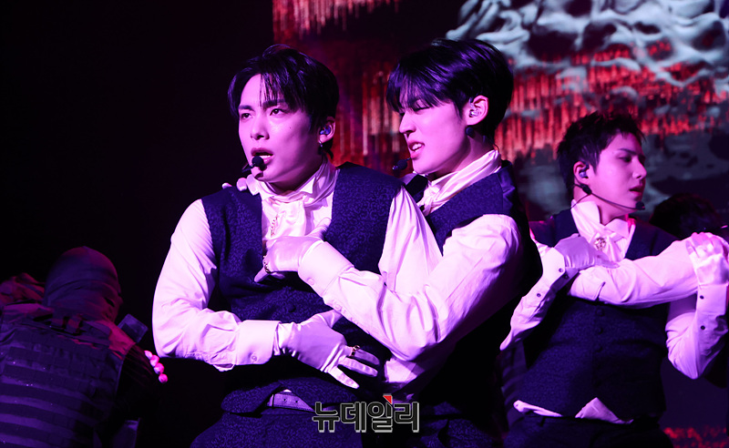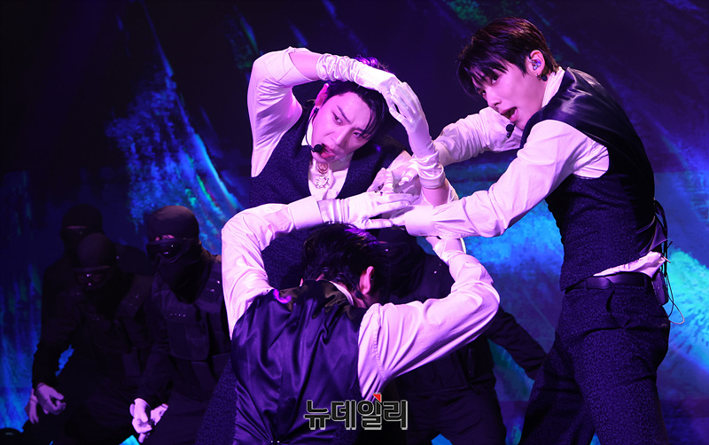 그룹 에이스(A.C.E) 강유찬, 이동훈, 박준희, 김병관, 와우가 20일 오후 서울 강남구 일지아트홀에서 열린 싱글3집 '피냐타(PINATA)' 발매 기념 쇼케이스에서 무대를 선보이고 있다.