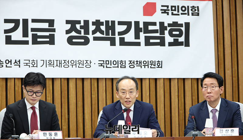 추경호 국민의힘 원내대표가 21일 오전 서울 여의도 국회에서 열린 '재정준칙 도입을 위한 긴급 정책간담회'에서 발언하고 있다.