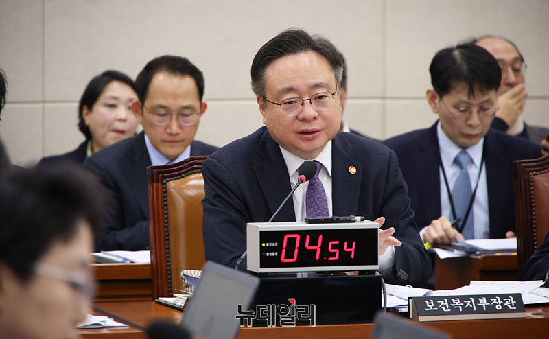 조규홍 보건복지부 장관이 21일 오전 서울 여의도 국회에서 열린 국회 보건복지위원회 전체회의에서 의원들의 질의에 답하고 있다.