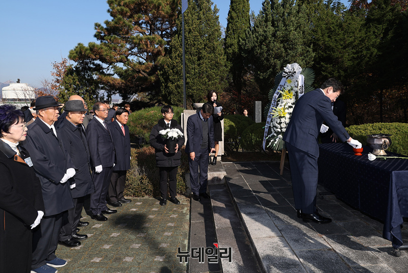 강석호 한국자유총연맹 총재가 22일 오전 서울 중구 한국자유총연맹 자유센터에서 열린 제79주년 신의주학생의거 기념식 직후 신의주학생의거 학생반공의탑을 찾아 참배하고 있다.'신의주 학생의거'는 1945년 11월 23일 평안북도 신의주에서 중학교 학생들이 ‘공산당 타도’를 외치며 벌인 반공 시위다.1957년 이승만 전 대통령이 '반공학생의 날'로 국가기념일을 지정했다. 1968년 박정희 전 대통령은 현재 남산 소재 한국자유총연맹 부지에 신의주학생의거기념탑을 세웠다.