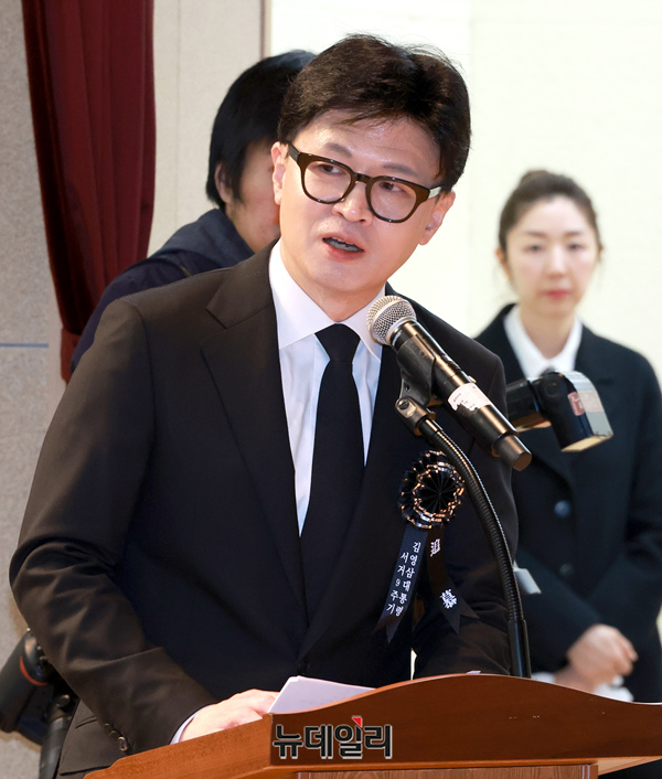 [포토] 추도사 하는 한동훈 국민의힘 대표