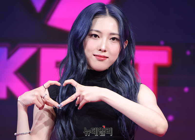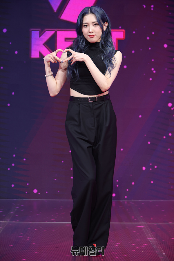 걸그룹 켈트나인(KELT9b) 민주가 22일 오후 서울 마포구 쇼킹 케이팝(KPOP) 센터에서 열린 싱글앨범 '언크러셔블(UNCRUSHABLE)' 발매 기념 미디어 쇼케이스에서 포즈를 취하고 있다.