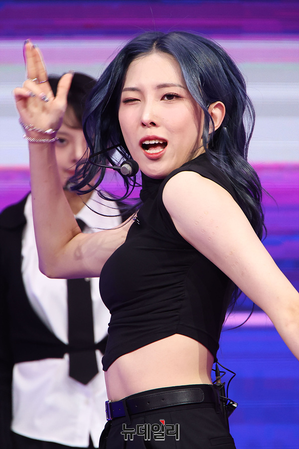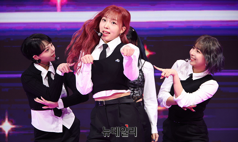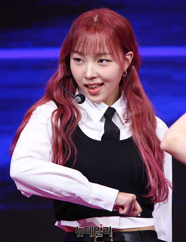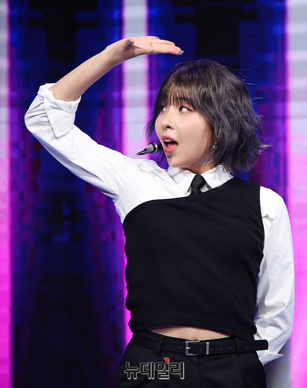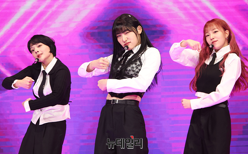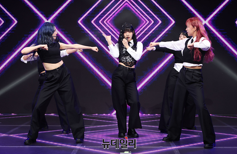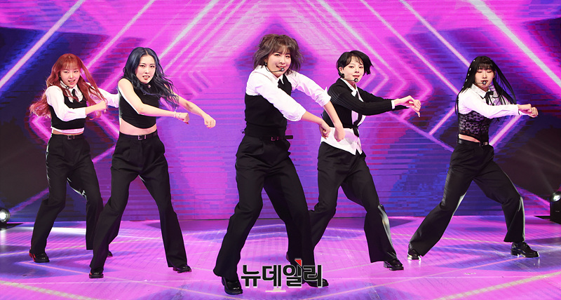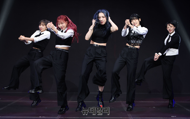 걸그룹 켈트나인(KELT9b) 의정, 해서, 민주, 루아, 채린이 22일 오후 서울 마포구 쇼킹 케이팝(KPOP) 센터에서 열린 싱글앨범 '언크러셔블(UNCRUSHABLE)' 발매 기념 미디어 쇼케이스에서 무대를 선보이고 있다.
