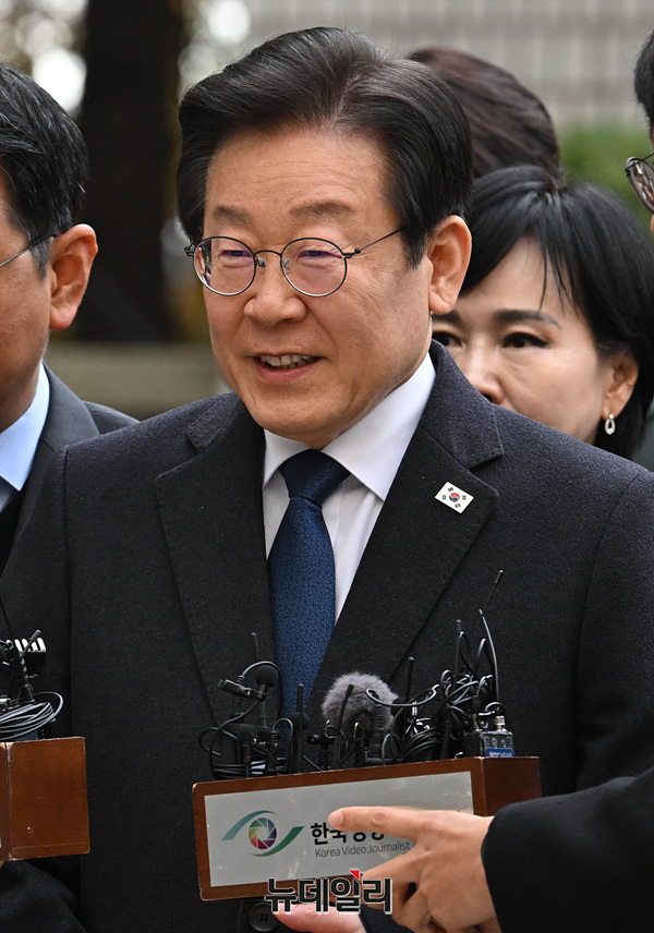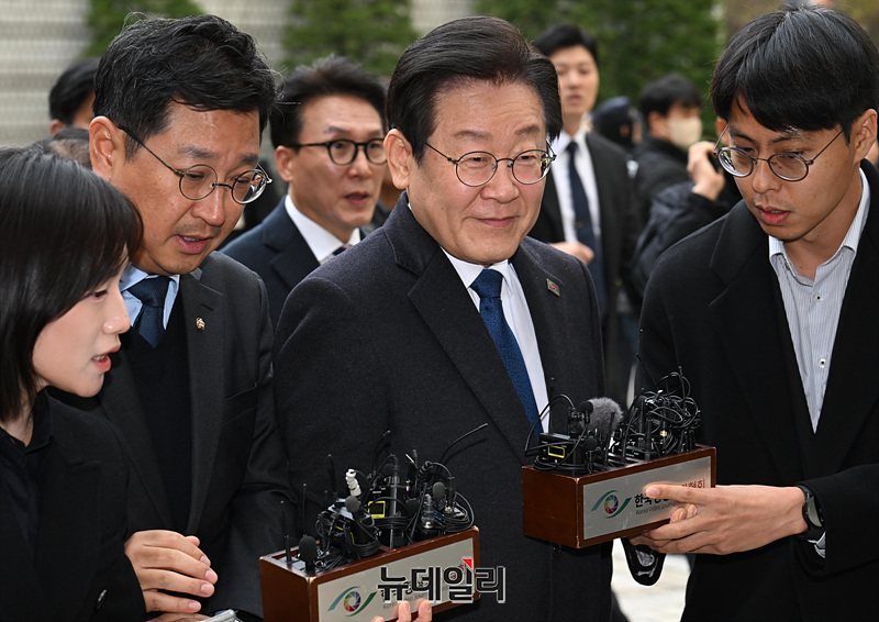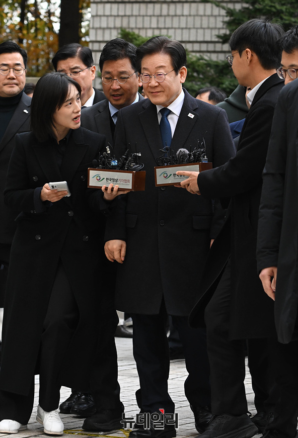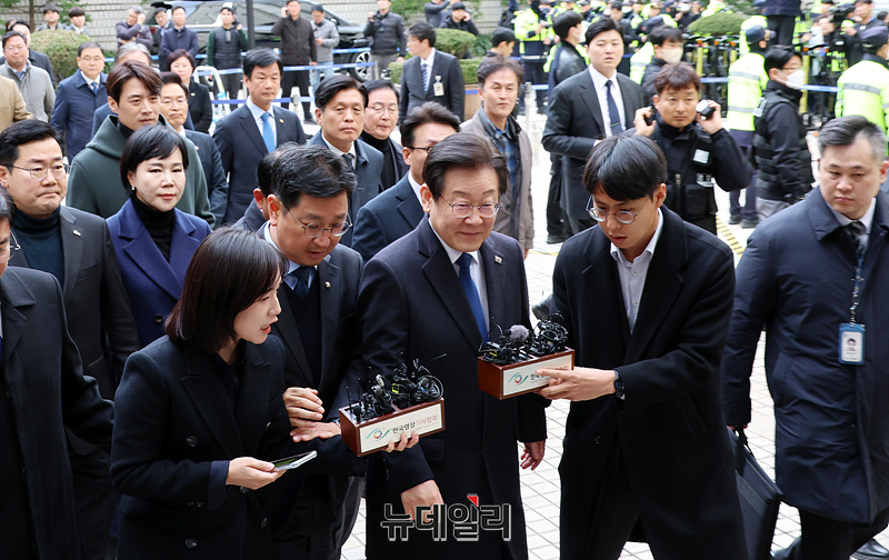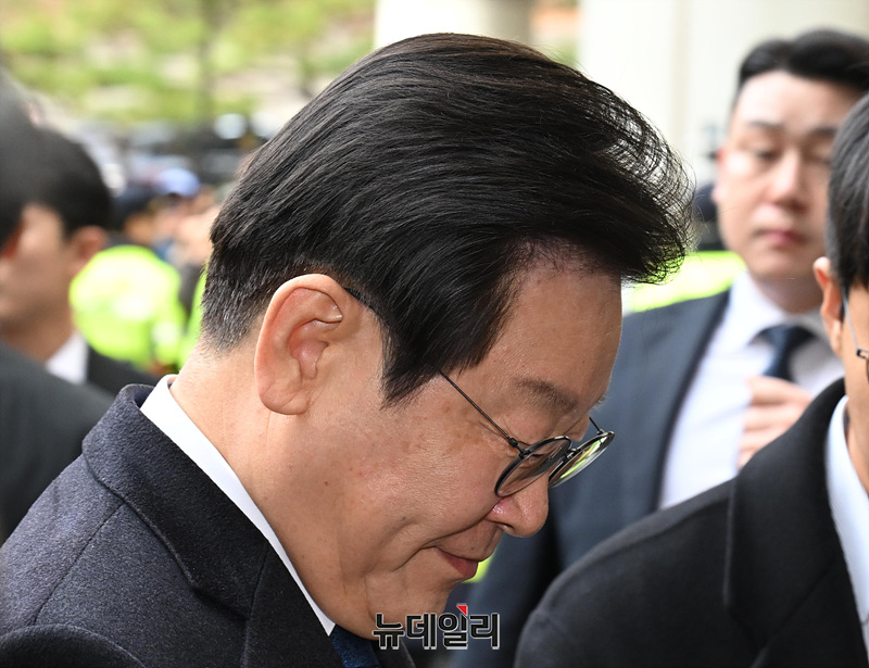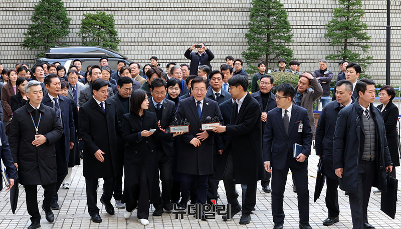 이재명 더불어민주당 대표가 25일 오후 서울 서초구 서울중앙지법에서 열린 '위증교사' 관련 1심 선고공판에 출석하고 있다. (사진=공동취재단)