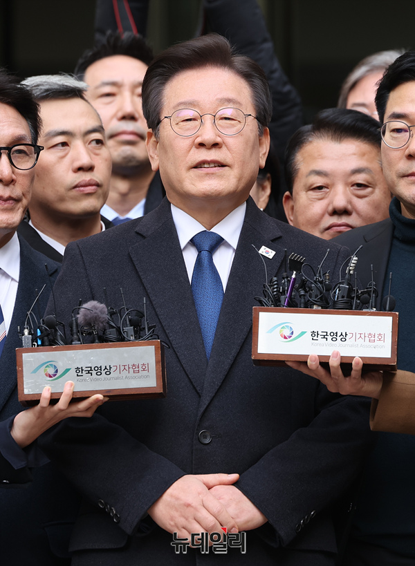[포토] 1심 무죄 후 입장 밝히는 이재명 대표