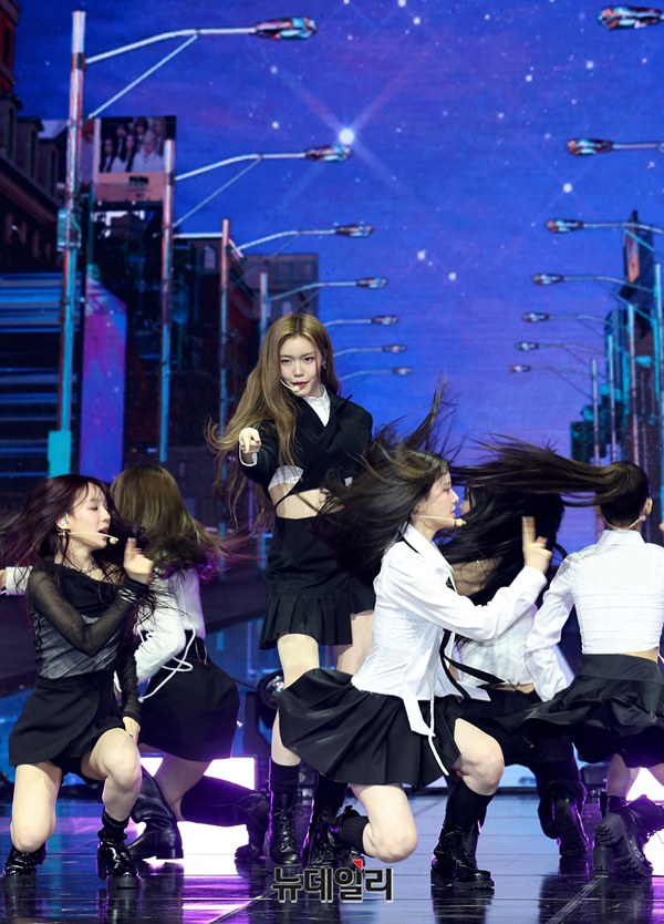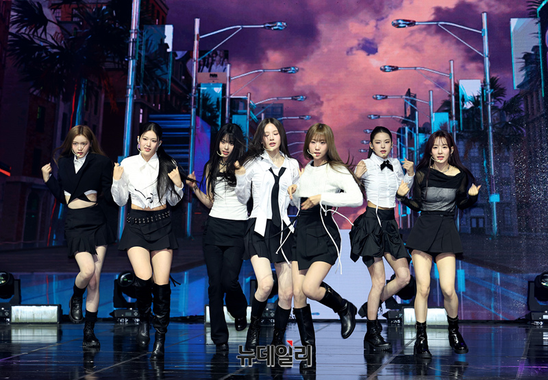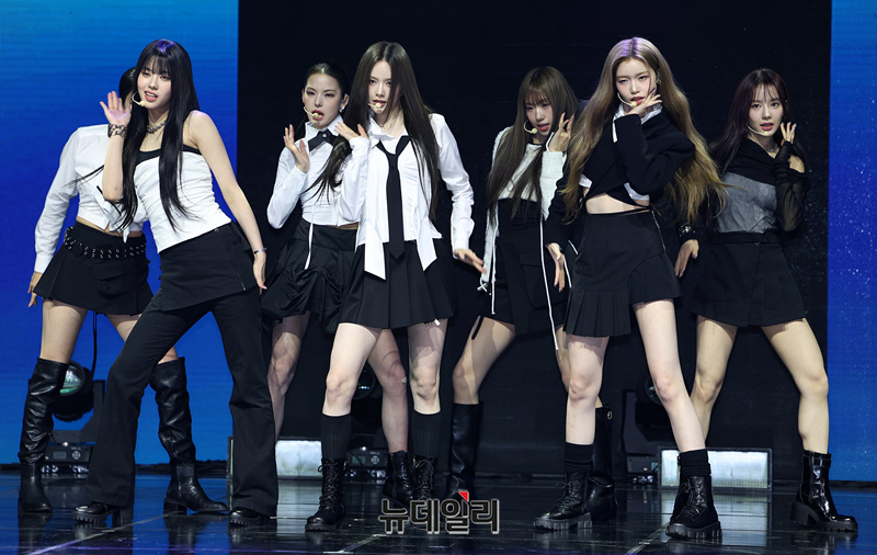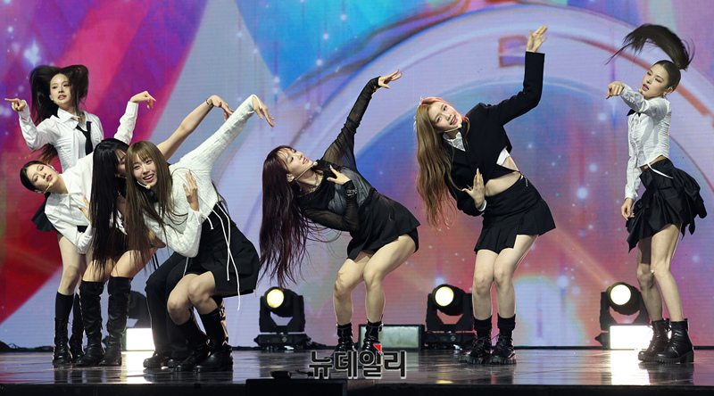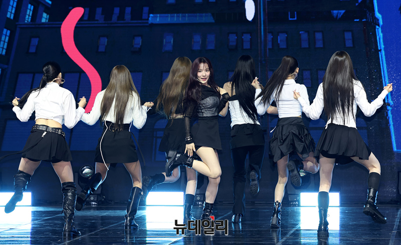 7인조 신인걸그룹 IZNA(이즈나)가 25일 오후 서울 성동구 예스24 라이브홀에서 열린 데뷔 앨범 쇼케이스에서 타이틀곡 무대를 선보이고 있다.