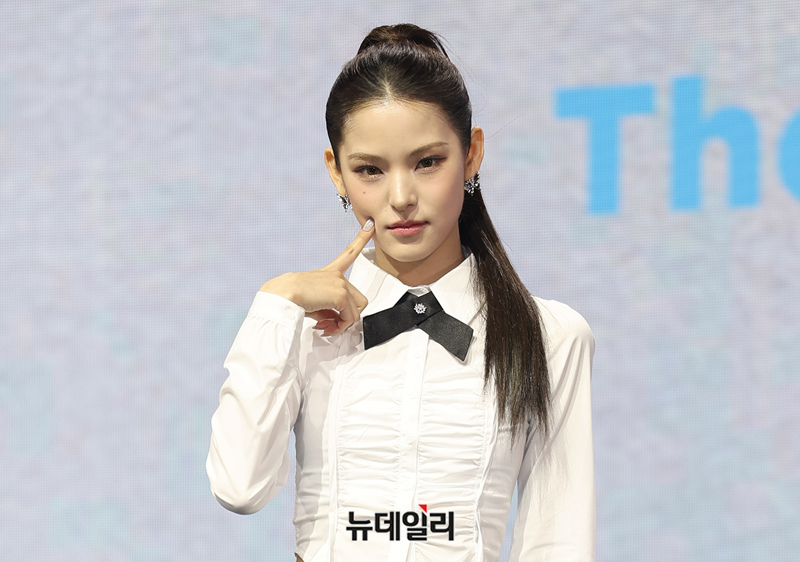 7인조 신인걸그룹 IZNA(이즈나) 마이가 25일 오후 서울 성동구 예스24 라이브홀에서 열린 데뷔 앨범 쇼케이스에서 포즈를 취하고 있다.