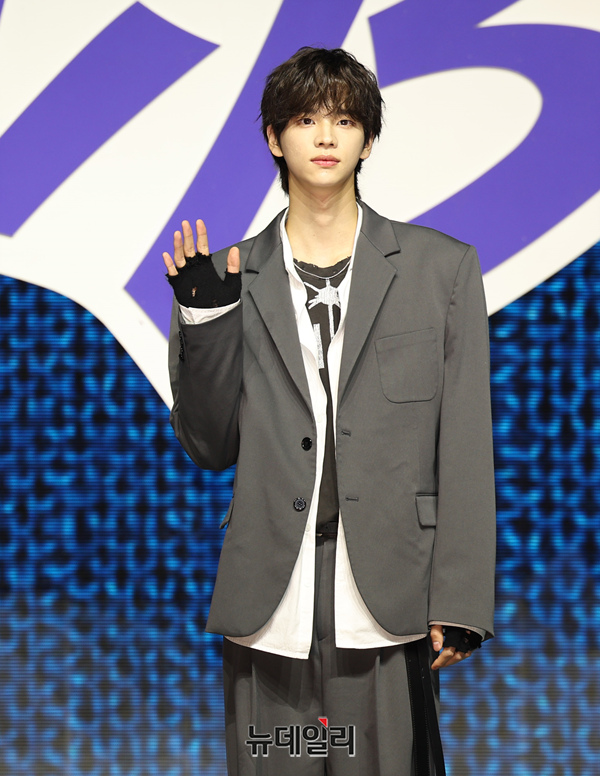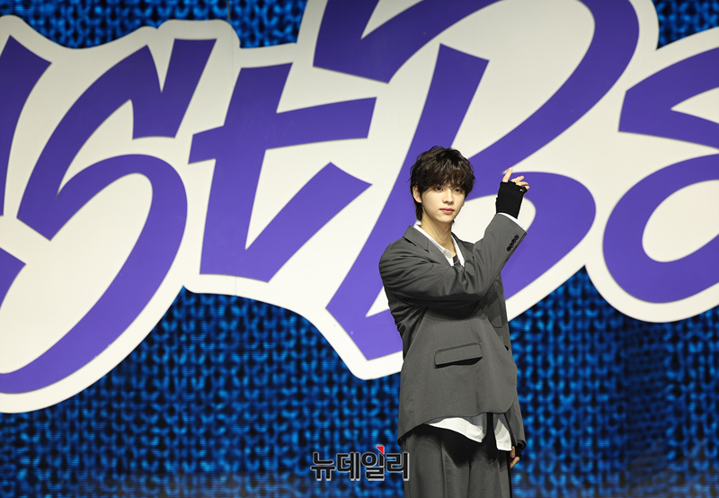 아이돌그룹 투어스(TWS) 경민이 25일 오후 서울 용산구 블루스퀘어에서 열린 싱글 1집앨범 'Last Bell(라스트 벨)' 쇼케이스에서 포즈를 취하고 있다.