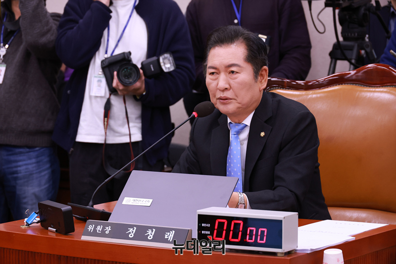 정청래 법사위원장이 27일 국회에서 열린 법제사법위원회 전체회의에서 강백신 수원지검 성남지청 차장검사와 엄희준 인천지검 부천지청장에 대한 탄핵청문회 조사계획서를 채택 하고 있다.