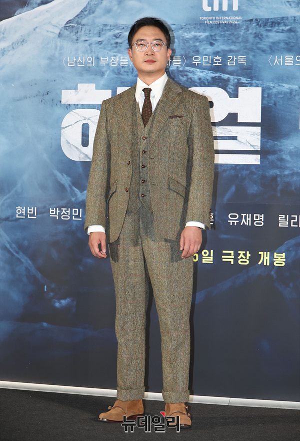 배우 조우진이 27일 오전 서울 CGV용산아이파크몰에서 열린 영화 '하얼빈(감독 우민호)' 제작보고회에서 포즈를 취하고 있다.