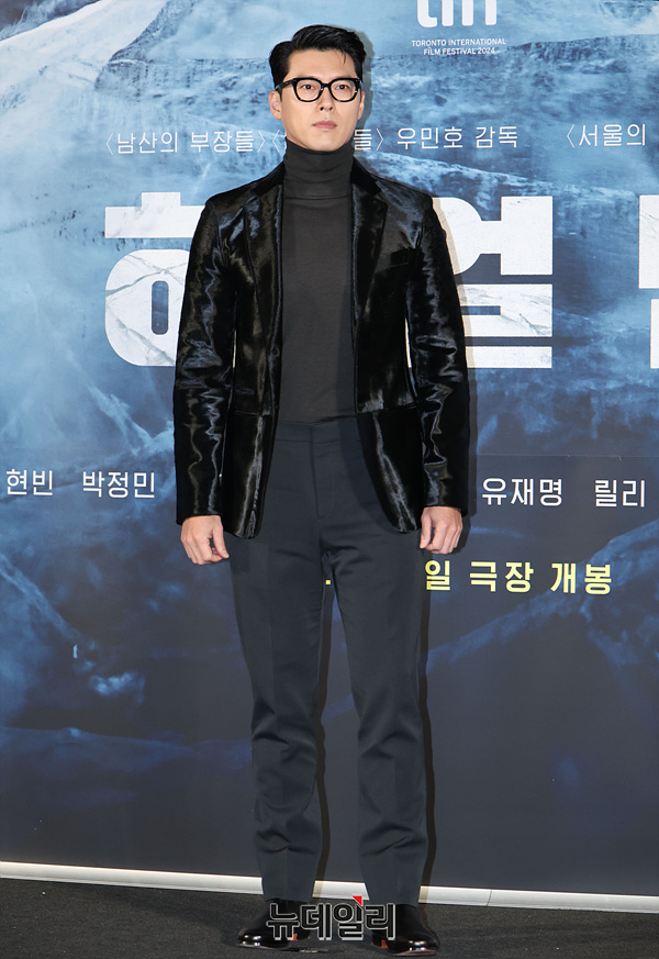 배우 현빈이 27일 오전 서울 CGV용산아이파크몰에서 열린 영화 '하얼빈(감독 우민호)' 제작보고회에서 포즈를 취하고 있다.