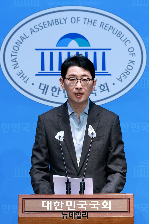 주진우 국민의힘 의원은 27일 오후 국회 소통관에서 기자회견을 갖고 '강제집행 면탈방지법' 발의 배경을 설명하고 있다.