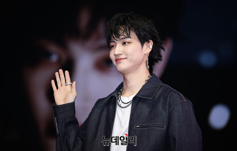갓세븐 제이비(JAY B)가 27일 오후 서울 광진구 예스24 라이브홀에서 열린 정규1집 '아카이브 원: [로드 러너](Archive 1: [Road Runner])' 발매 기념 미디어 쇼케이스에서 포즈를 취하고 있다.