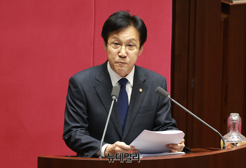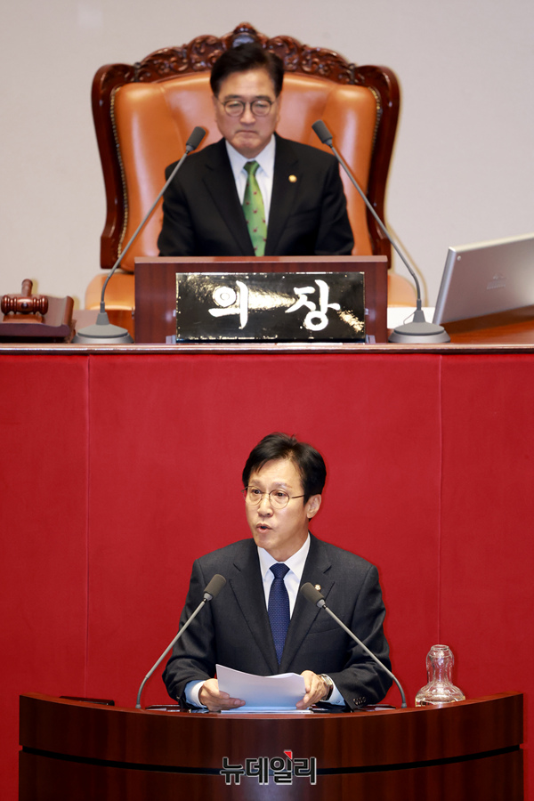신영대 더불어민주당 의원이 28일 오후 국회에서 열린 본회의에서 자신에 대한 체포동의안 표결에 앞서 신상 발언을 하고 있다.