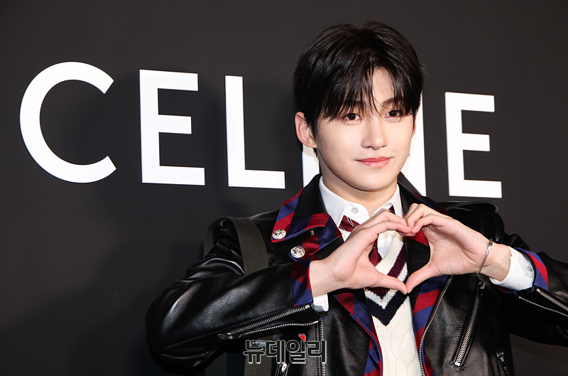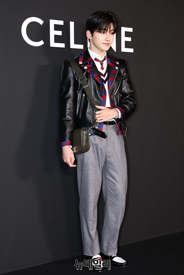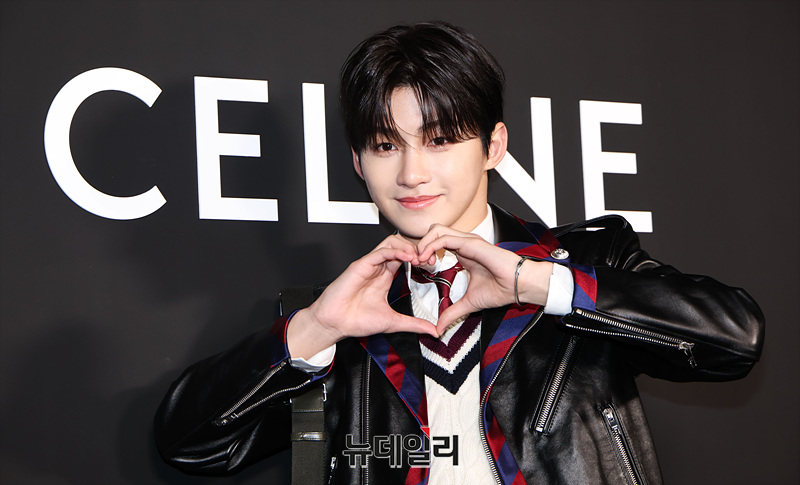 그룹 투어스(TWS) 지훈이 28일 오후 서울 강남구에서 열린 셀린느 청담 플래그십 스토어 오픈 기념 포토월에서 포즈를 취하고 있다.