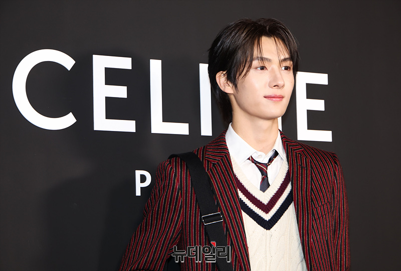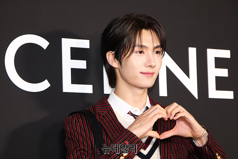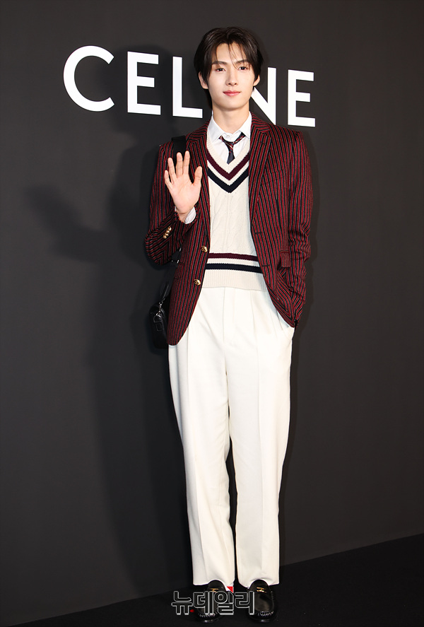 그룹 투어스(TWS) 영재가 28일 오후 서울 강남구에서 열린 셀린느 청담 플래그십 스토어 오픈 기념 포토월에서 포즈를 취하고 있다.