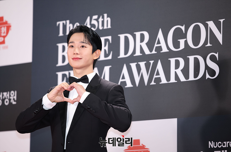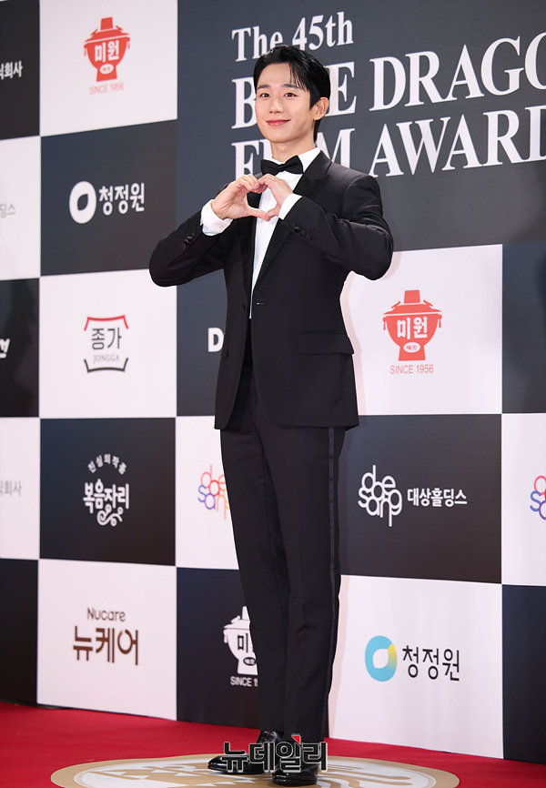 배우 정해인이 29일 오후 서울 여의도 KBS에서 열린 '제45회 청룡영화상' 레드카펫 행사에서 포즈를 취하고 있다.