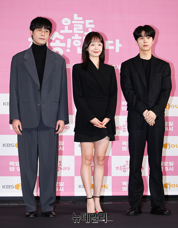 배우 최다니엘, 전소민, 김무준이 2일 오후 서울 마포구 스탠포드 호텔에서 열린 KBS Joy 드라마 '오늘도 지송합니다' 제작발표회에서 포즈를 취하고 있다.