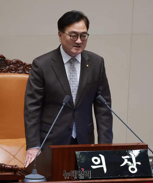 우원식 국회의장이 2일 오후 국회에서 열린 본회의에서 의사진행을 하고 있다.