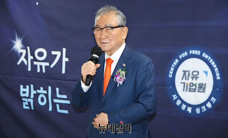 손병두 대한민국역사와미래 이사장이 2일 오후 서울 여의도 자유기업원에서 열린 '2024 자유의 밤 시상식'에서 자유등대상을 수상하고 소감을 밝히고 있다.2021년부터 수여하고 있는 '자유등대상'은 자유주의를 전파하는데 공헌한 사회 원로에게 주는 공로상이다.자유기업원은 매년 연말, 한 해 동안 자유주의와 시장경제 확산에 기여한 인물을 선정해 감사의 뜻을 전하는 시상식을 진행하고 있다. 올해는 △자유경제입법상 △자유경제자치대상 △자유기업인상 △자유경제교육상 △자유등대상 △자유인상 으로 총 6개 부문에서 시상이 이루어졌다.