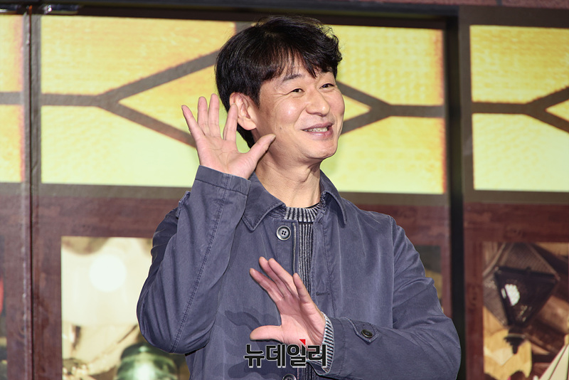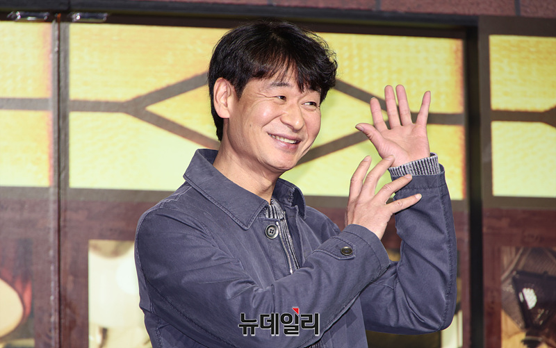 배우 박혁권이 3일 오전 서울 강남구 코엑스에서 열린 디즈니 플러스 '조명가게' 제작발표회에서 포즈를 취하고 있다.
