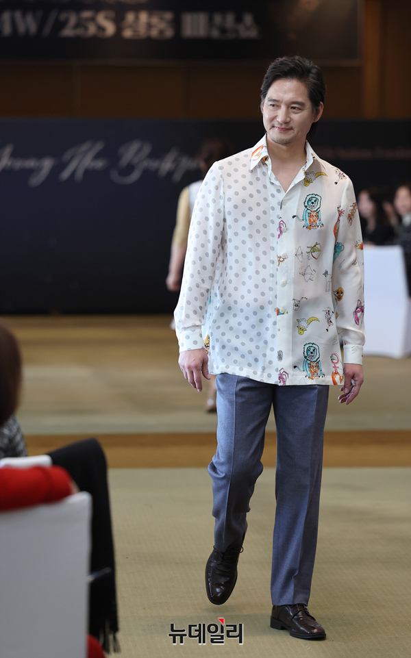배우 유태웅이 3일 오후 서울 용산구 그랜드하얏트에서 열린 24W/255 컬렉션에서 런웨이를 선보이고 있다.이번 살롱 패션쇼는 '우주 속으로, 나의 별자리'를 주제로 신비롭고 환상적인 우주 여행에 대한 특별한 메 시지를 담은 작품들로 연말을 장식했다.설 디자이너 아들인 양현준씨가 드로잉한 우주 속의 별자리를 원단에 프린트한 작품들을 함께 선보였다. 메인 컬러는 옐로우(Yellow)이며 오프 화이트 (Off white), 파스타치오 그린(Pistachio green), 버건디(Burgundy), 블랙&화이트(Black & White), 스위트 핑크(Sweet pink) 등으로 함께 화사한 분위기의 컨셉을 살리고, 실크와 울, 레이스, 시퀸 등의 소재를 사용해 고급스러움을 더한 것이 특징이다.