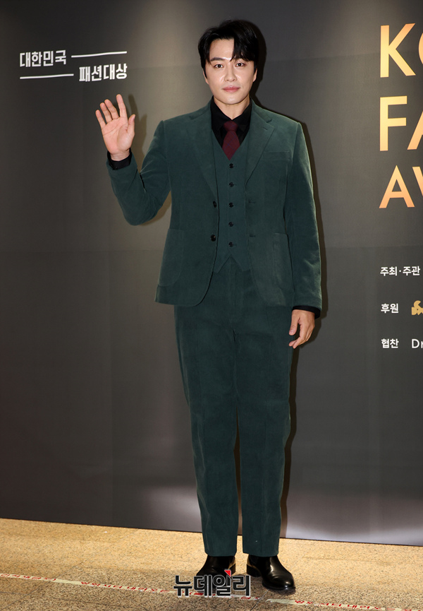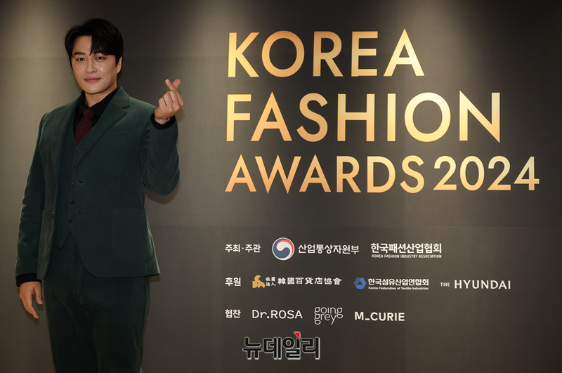 배우 민우혁이 4일 오후 서울 강남구 섬유센터에서 열린 2024 대한민국 패션 대상 시상식에 참석해 포즈를 취하고 있다.