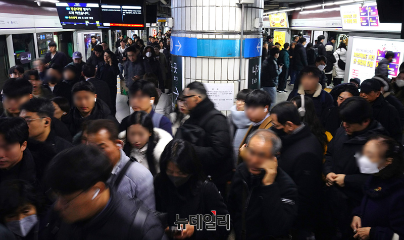 [포토] 철도노조 파업, 지연되는 지하철에 붐비는 역사