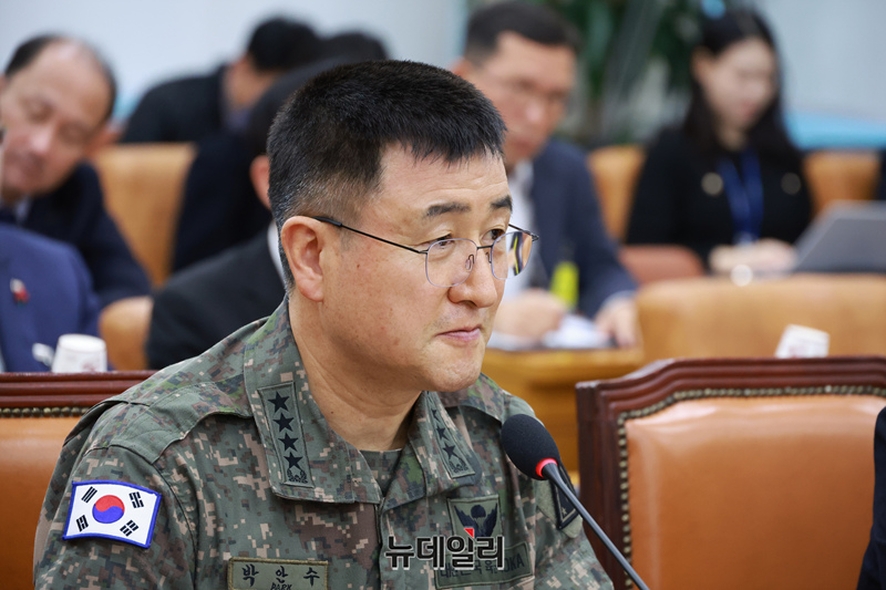 계엄사령관을 맞았던 박안수 육군참모총장이 5일 오전 윤석열 대통령의 비상계엄 선포·해제 경위와 관련한 긴급 현안질의가 열린 국회 국방위원회 전체회의에서 의원 질의에 답변하고 있다.