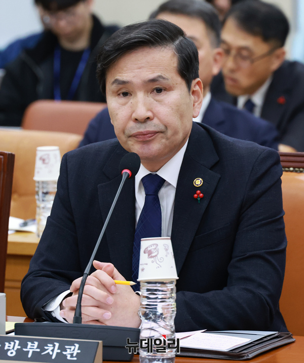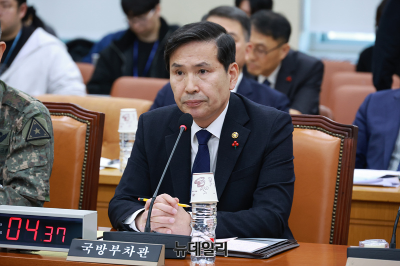 김선호 국방부 차관이 5일 오전 윤석열 대통령의 비상계엄 선포·해제 경위와 관련한 긴급 현안질의가 열린 국회 국방위원회 전체회의에서 의원 질의에 답변하고 있다.