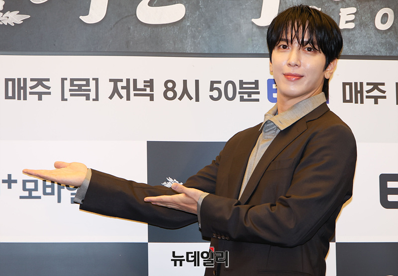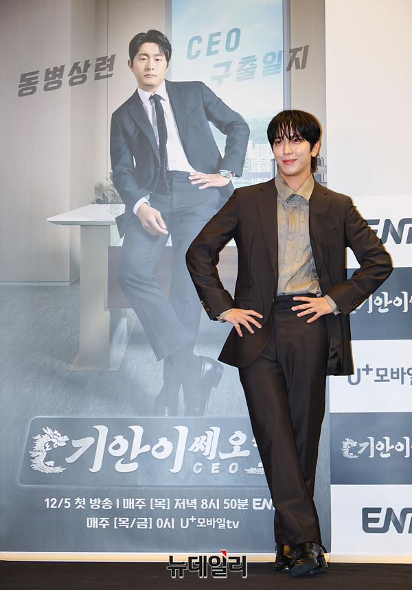 가수 정용화가 5일 오후 서울 마포구 스탠포드호텔에서 열린 ENA X LG유플러스 예능 '기안이쎄오' 제작발표회에서 포즈를 취하고 있다.