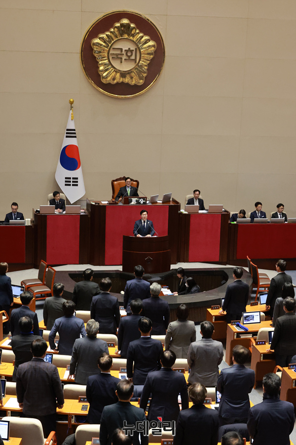 [포토] 국민의힘 108명 의원들 이름 부르는 박찬대 민주당 원내대표