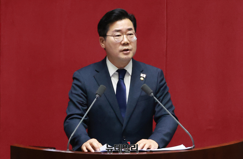 박찬대 더불어민주당 원내대표가 7일 오후 국회 본회의에서 열린 윤석열 대통령 탄핵소추안 제안설명을 하며, 국민의힘 108명 의원들 이름을 부르며 돌아올 것을 호소하고 있다.