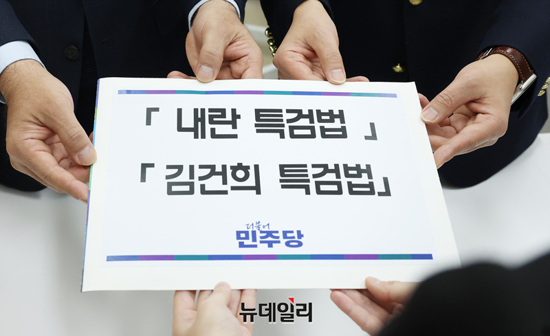 [포토] '내란특검법'과 '김건희특검법' 제출하는 민주당