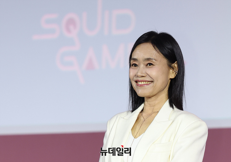 배우 강애심이 9일 오전 서울 중구 동대문디자인플라자에서 열린 넷플릭스 오징어게임2 제작보고회에서 포즈를 취하고 있다.오징어 게임 시즌2는 복수를 다짐하고 다시 돌아와 게임에 참가하는 ‘기훈’(이정재)과 그를 맞이하는 ‘프론트맨’(이병헌)의 치열한 대결, 그리고 다시 시작되는 진짜 게임을 담은 이야기다.배우 이정재를 포함해 시즌1에서 돌아온 이병헌, 위하준, 공유 그리고 시즌2에 새롭게 합류한 임시완, 강하늘, 박규영, 이진욱, 박성훈, 양동근, 강애심, 이서환, 조유리 등이 탄탄한 앙상블을 선보인다. 26일 넷플릭스 공개.