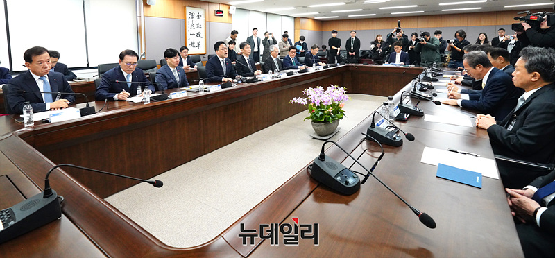 김병환 금융위원장과 참석자들이 9일 오전 서울 종로구 정부서울청사에서 열린 금융상황 점검회의에 참석해 자리하고 있다.